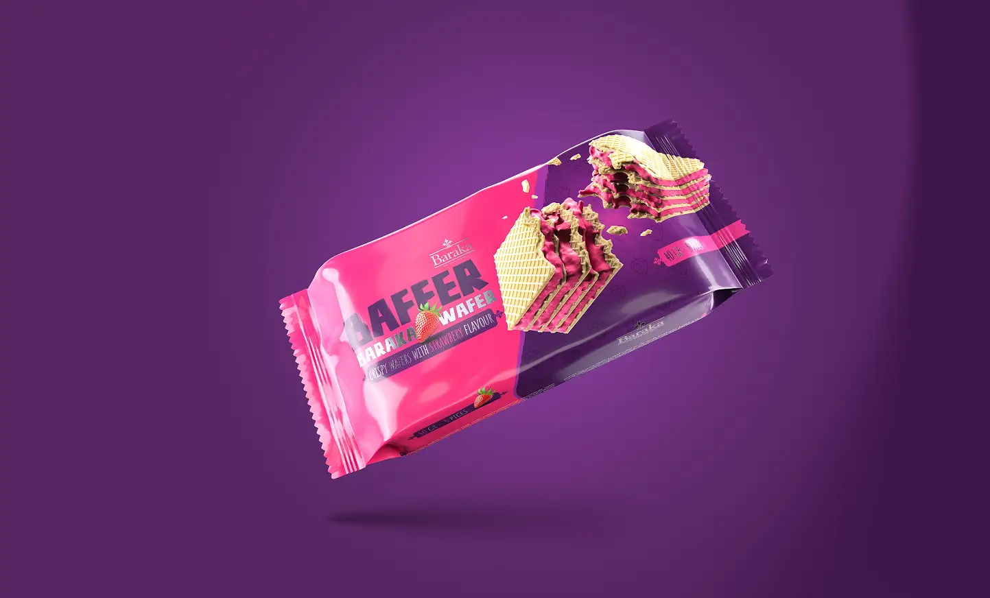One of the key highlights is the depiction of the wafer breaking mid-air—an intentional visual that draws attention to the soft, flavorful interior and its layered structure. This 3D representation not only serves as an eye-catching promotional asset but also builds visual trust in the authenticity and richness of the product.